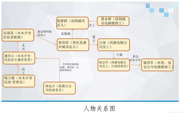 2023 年 4月29日下午,木木夕舍民宿管理员喻万德发现事故电梯出现电梯门锁故障,联系电梯厂家业务人员钟远才派人进行维修,但经过2次维修,故障未能消除。当晚,木木夕舍民宿老板娘范瑞英在“58同城”平台与深圳威宾联系人“黄小姐”(即黄珍珍)沟通电梯维修事宜。4月30日,黄珍珍将深圳威宾营业执照和《特种设备生产许可证》提供给范瑞英,并私下联系深圳威宾的作业人员黄永辉,在对方表示没空拒绝后,黄珍珍通过丈夫白深将此次电梯维修业务信息告知陆宗华,而后陆宗华将此次业务介绍给梁绍军。