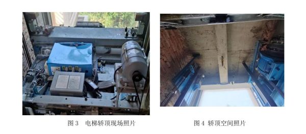 现场勘验时,该电梯5楼层门因消防救援破拆门扇损坏,门锁装置轻微变形,门套及层门外侧装饰部分破损。轿顶操纵箱变形,控制柜及电梯其他位置外观无异常,现场电梯因救援破拆已无法正常运行。